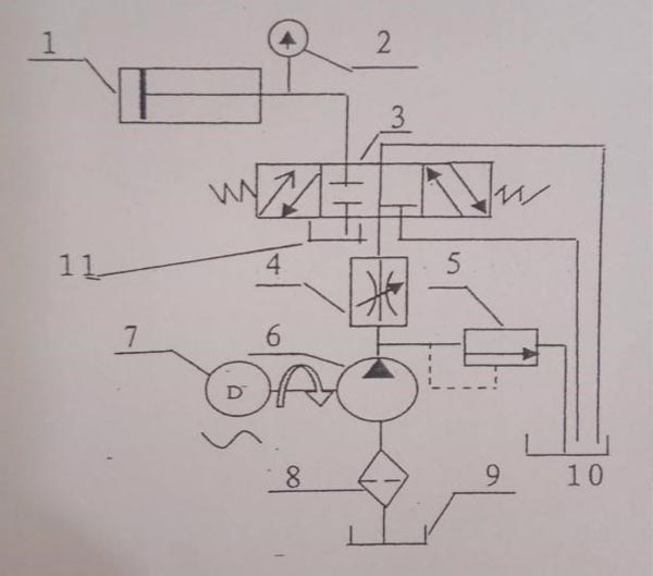 本机液压系统是由一台5.5kw电机作动力,直接与一台31.5Mpa柱塞泵连接供应系统,完成各项动作的。请参考液压原理图