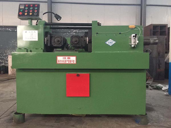 本机的两个主轴作同步、同方向回转,右主轴在液压推动下作水平方向进给运动,使两滚丝轮间工件滚压成为要求的螺纹或形状
