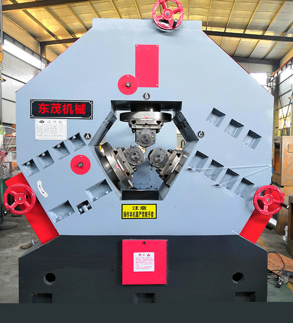 1:调距 调好三轴距离,使三个滚丝模之间的距离对于滚丝工件大致成等边三角形,并开启液压手动档,调节油缸螺母靠塞,使活动导轨的滚丝模送过去时刚好碰触被滚工件。